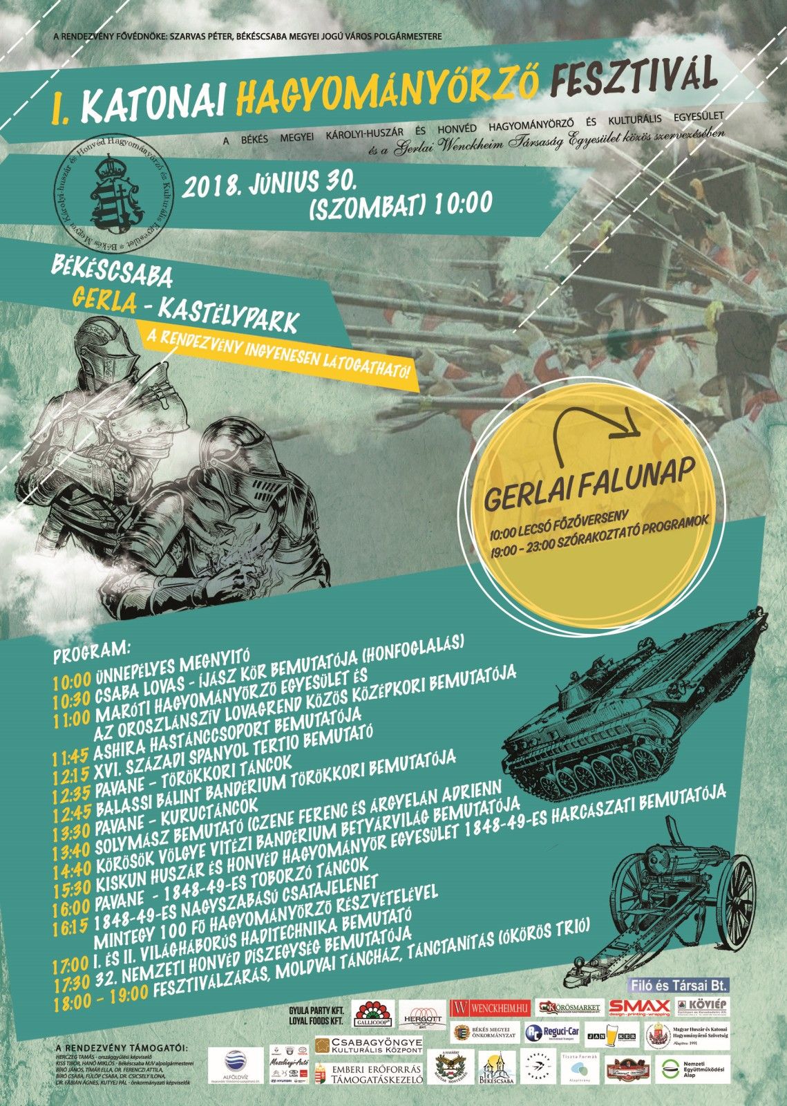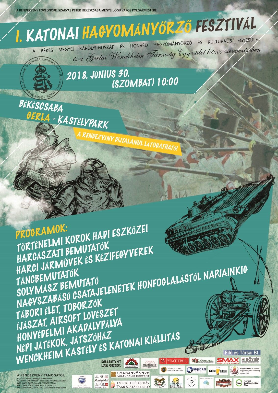 Mindenkit szeretettel várunk a Békés Megyei Károlyi-huszár és Honvéd Hagyományőrző és Kulturális Egyesület és a Gerlai Wenckheim Társaság közös szervezésében hadijáték a történelem jegyében, rendezvényére!