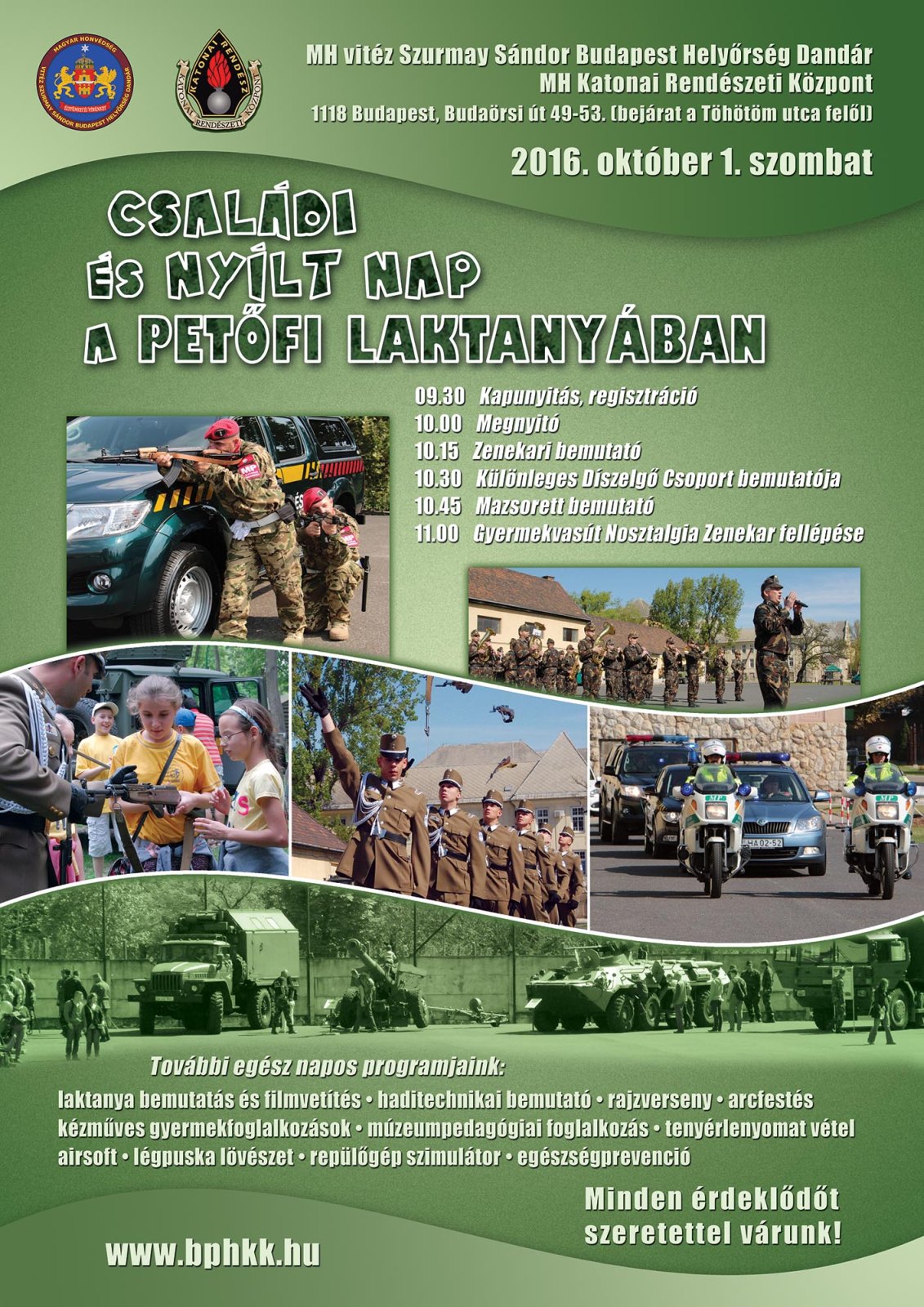 Lásd a kacsolódó hírben és a mellékelt plakáton. Dátum: szombat, 2016, október 1 - 09:30 - 16:30Kapcsolódó hír: Családi és nyílt nap a Petőfi laktanyában Címkék fesztivál