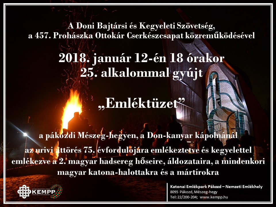 Helyszín: Mészeg-hegy, Pákozd Dátum: péntek, 2018, január 12 - 18:00 Címkék II. világháborúPákozdmegemlékezés