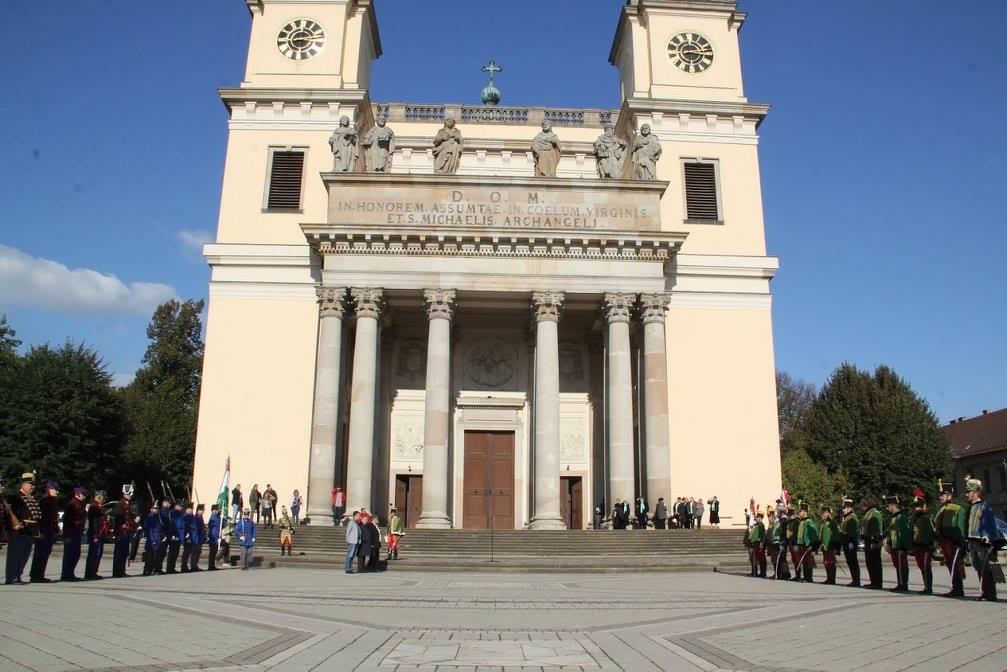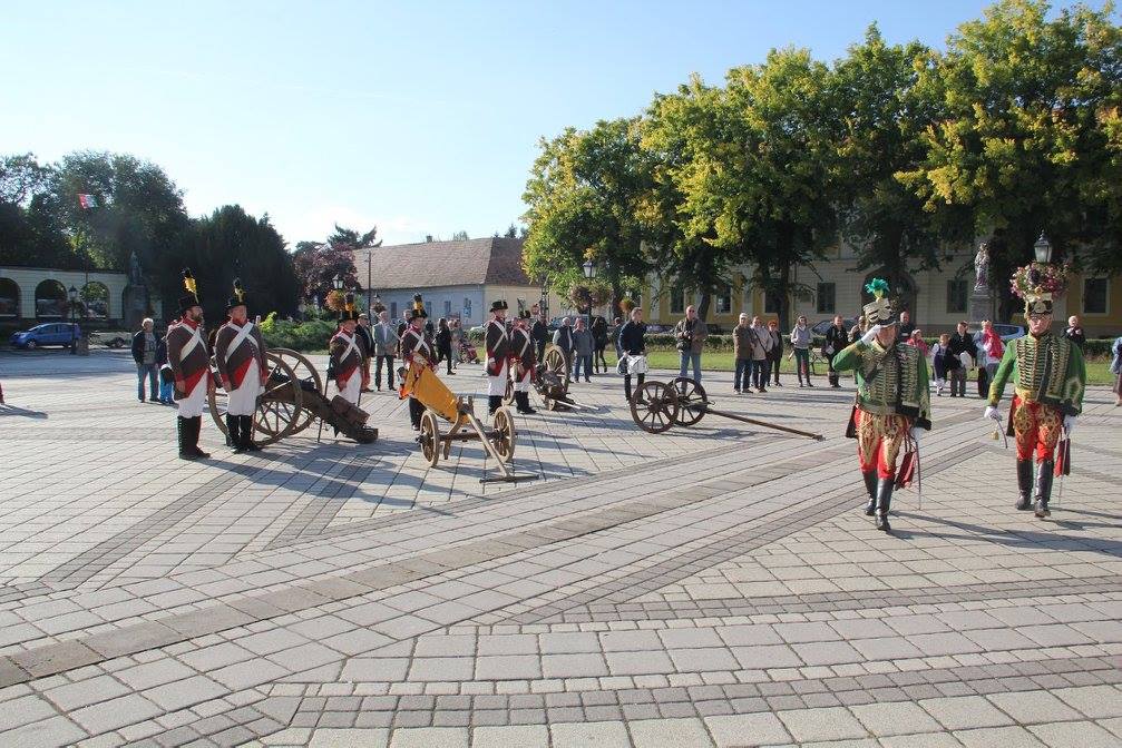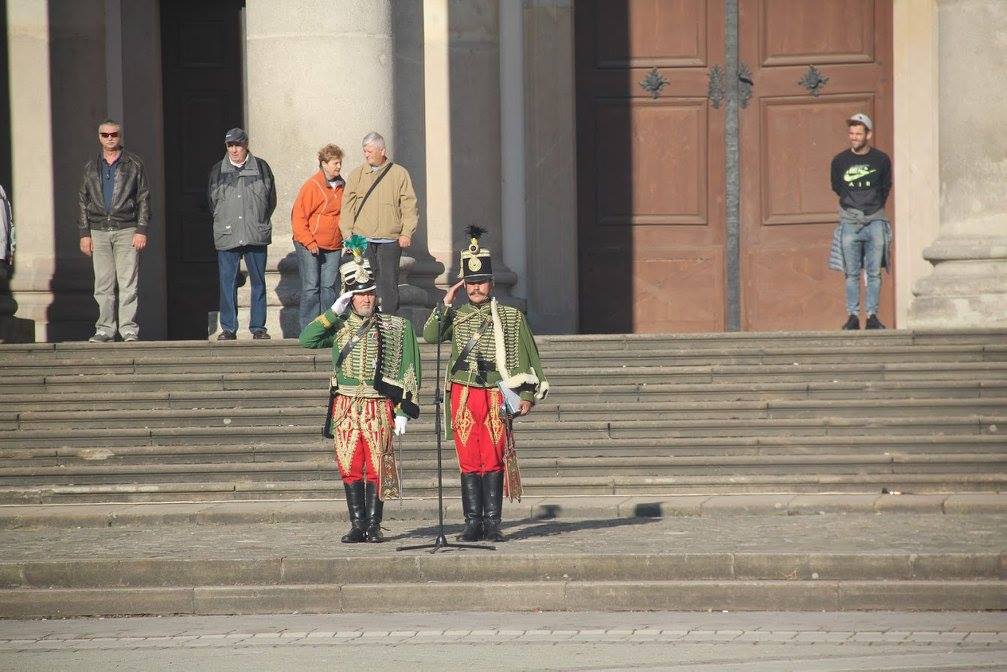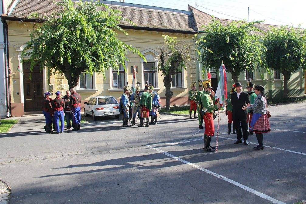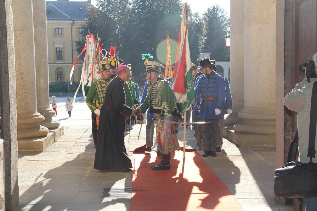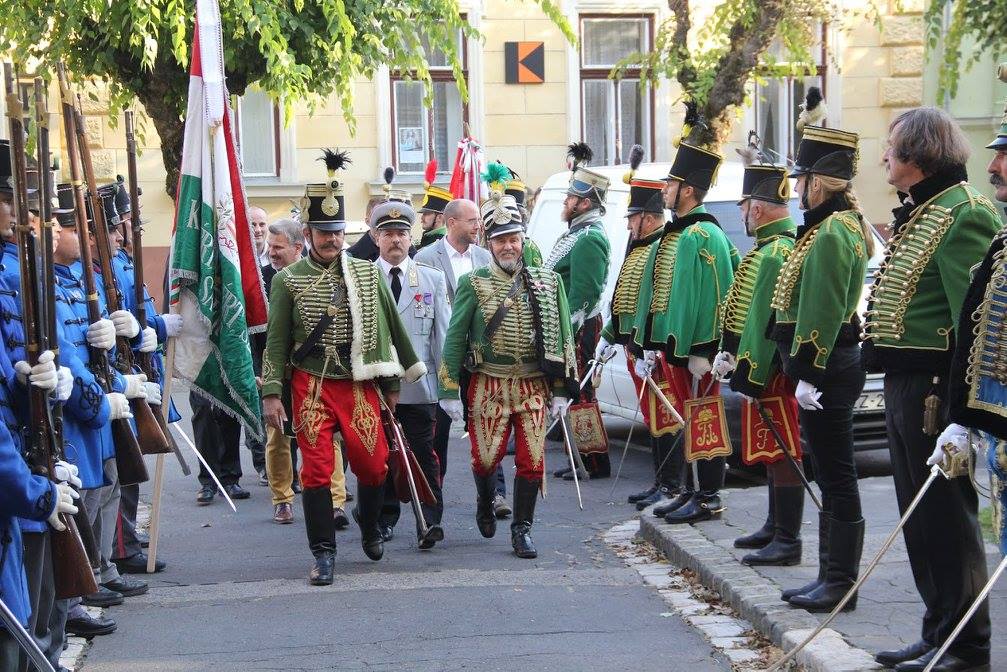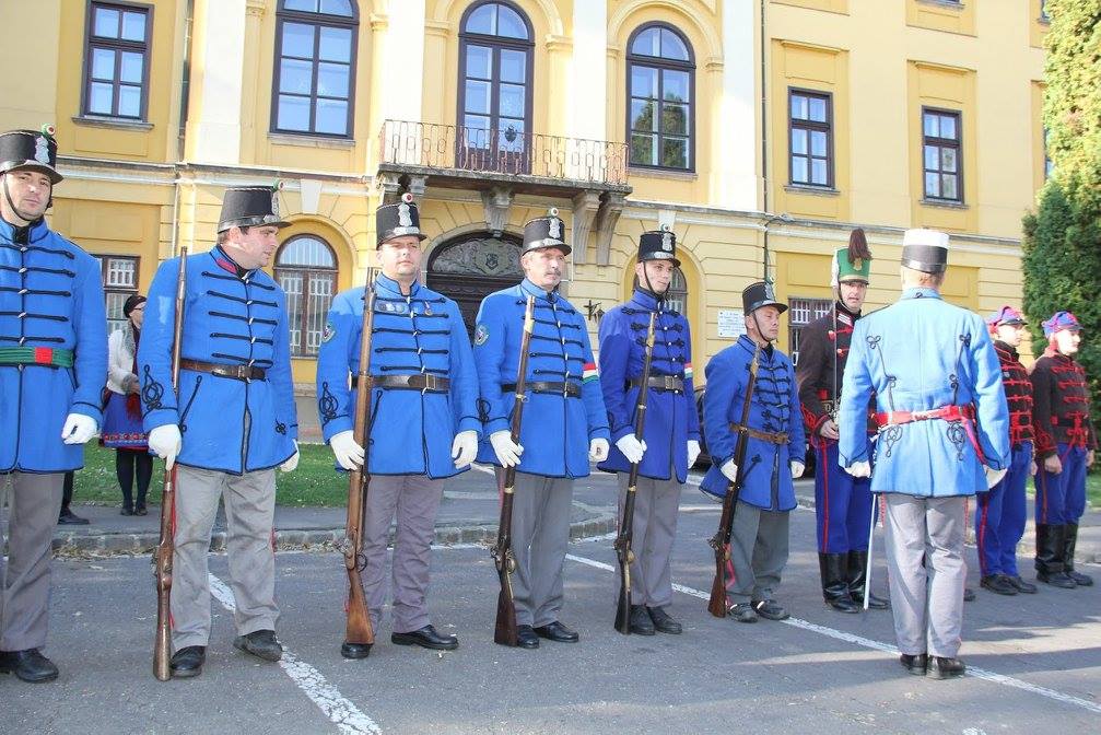 Fördős Attila polgármester úr üdvözlő szavai után a Magyar Huszár és Katonai Hagyományőrző Szövetség megbízásából ezüst és bronz érdemkereszteket adtak át a magyar katonai hagyományok ápolásának kimagasló érdemeiért Bakó Zsolt hő. főhadnagy úrnak, Erb Lajos hő. hadnagy úrnak, Kerekes Gábor hő. tüzérhadnagynak és Farkas Tibor hő. tüzér hadnagynak. Emlékező műsor után a huszárok, nemzetőrök és tüzérek a dómba vonultak, ahol Dr. Beer Miklós püspök úr megáldotta a csapatzászlóinkat.