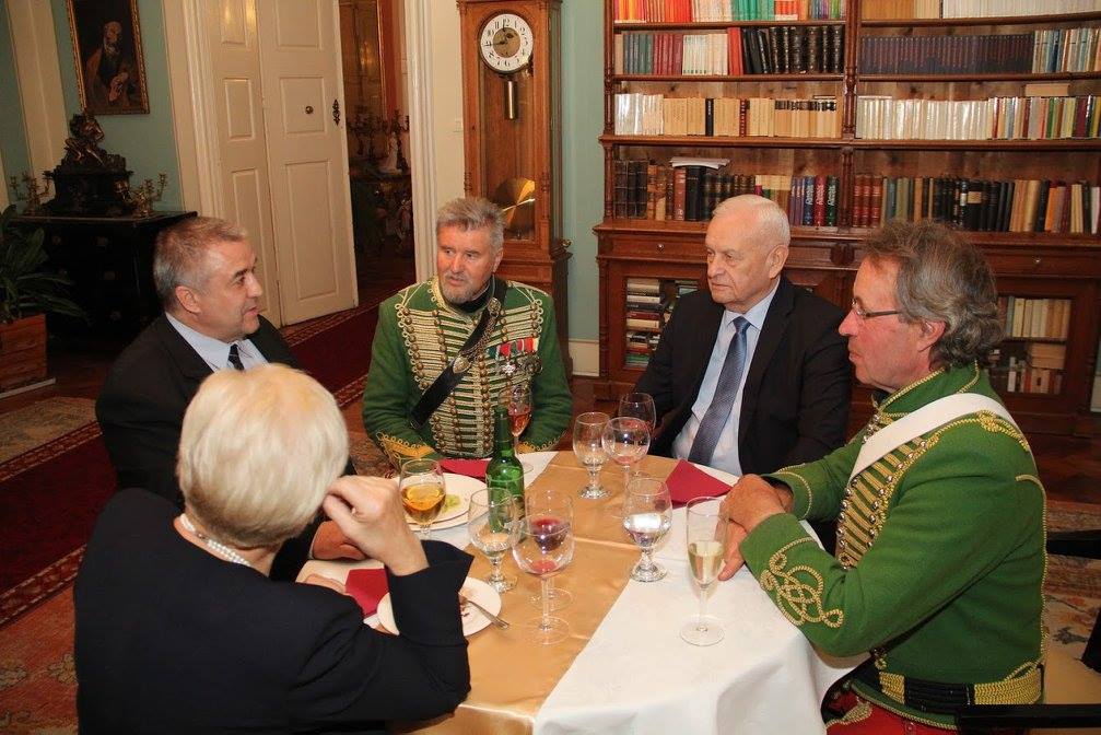 A székesegyházból történő kijövetel után ágyúszó köszöntötte a születésnapját ünneplő bandériumot, majd a Püspöki palotában meneteltünk, ahol kiállítást tekinthettünk meg az elmúlt időszak legszebb pillanataiból, melyet Csereklye Sándor hő. alezredes, a bandérium tiszteletbeli elnöke nyitott meg, újra elmesélve az indulást, emlékezve a „hőskorra”. Az ünneplést állófogadáson folytattuk.  (Fotók: Vörös István)