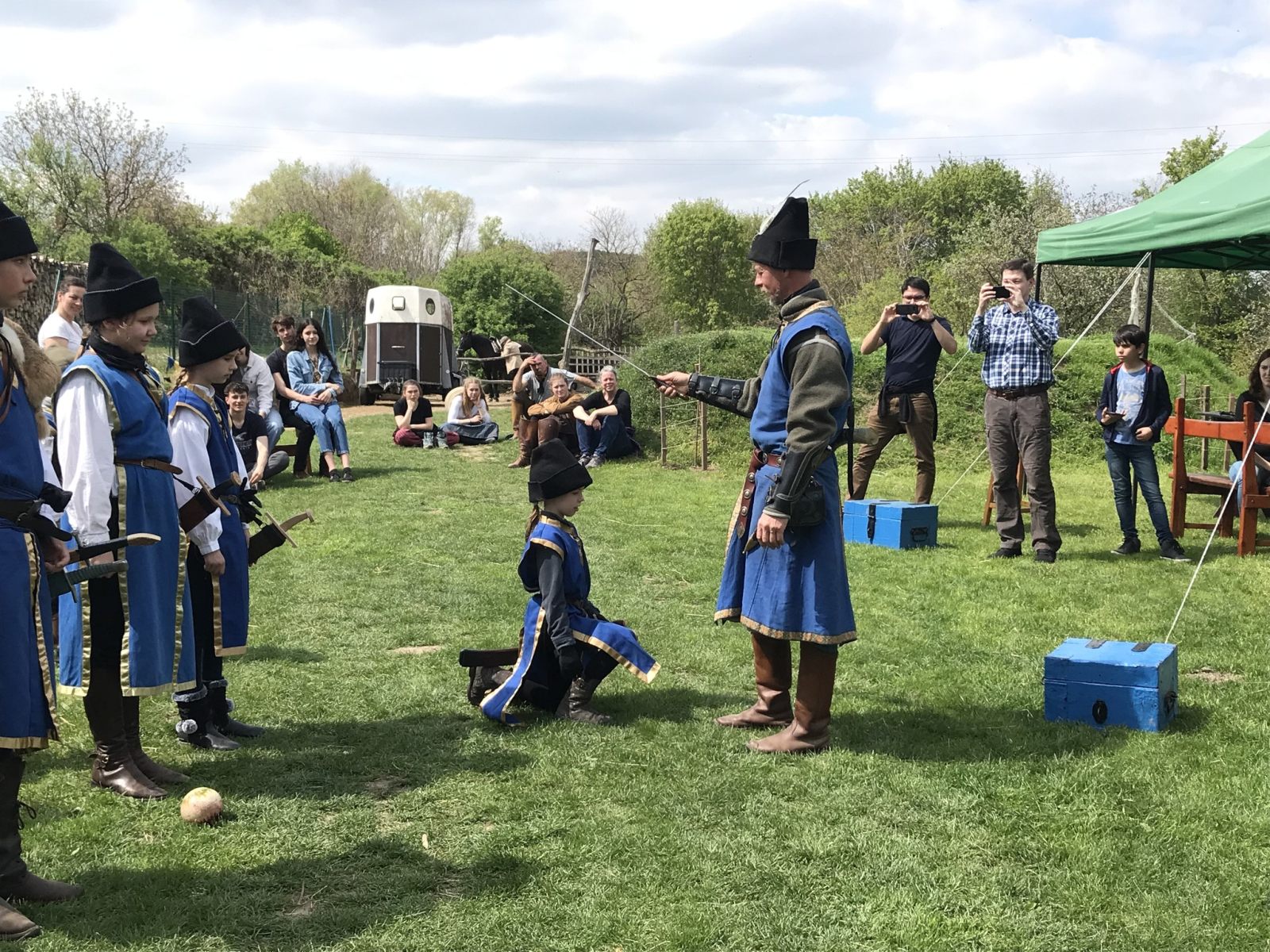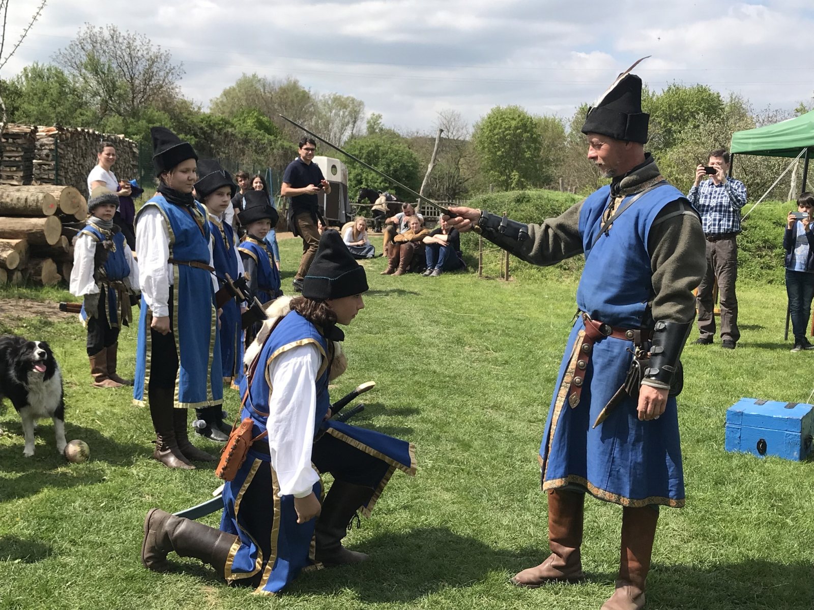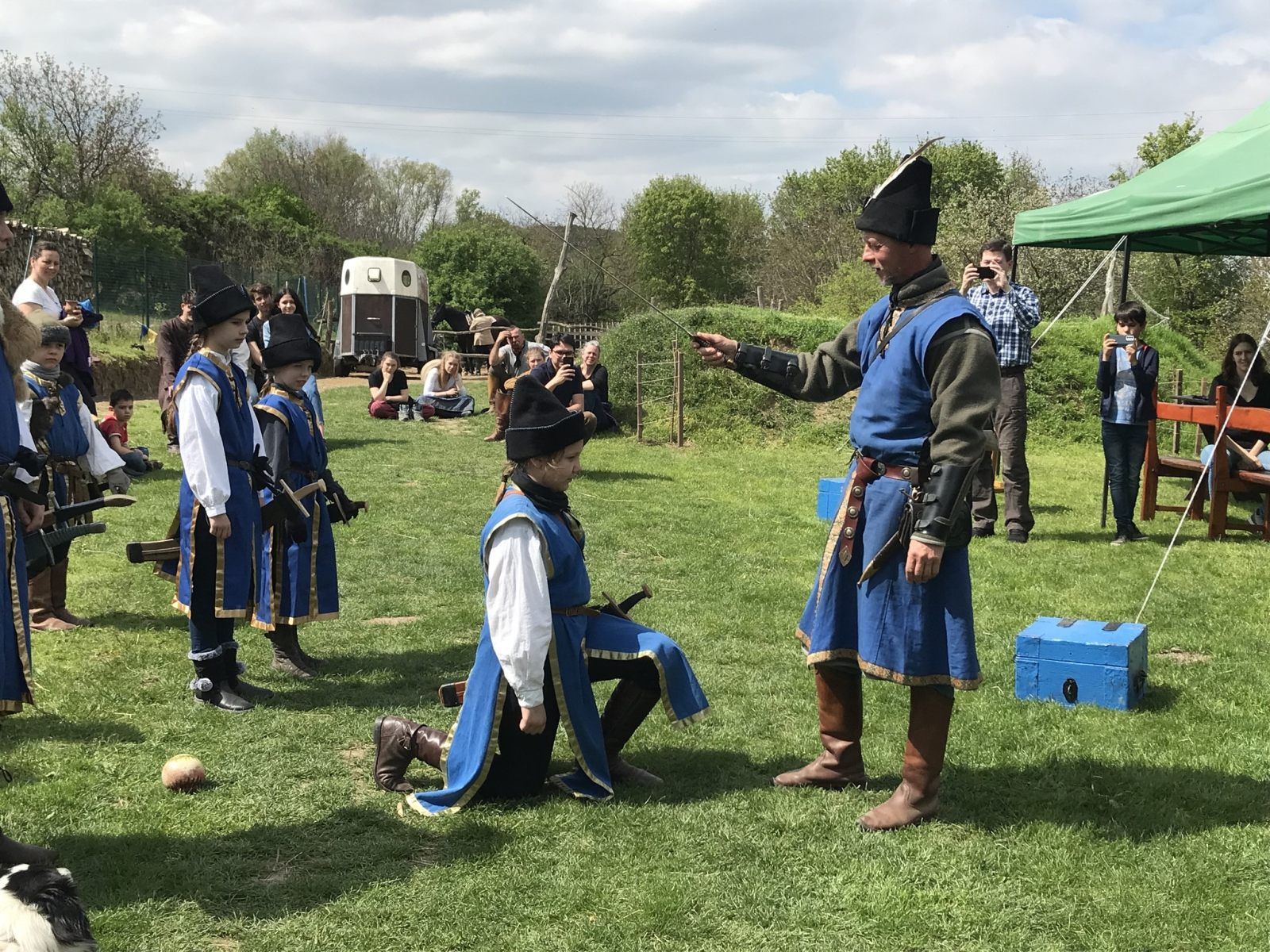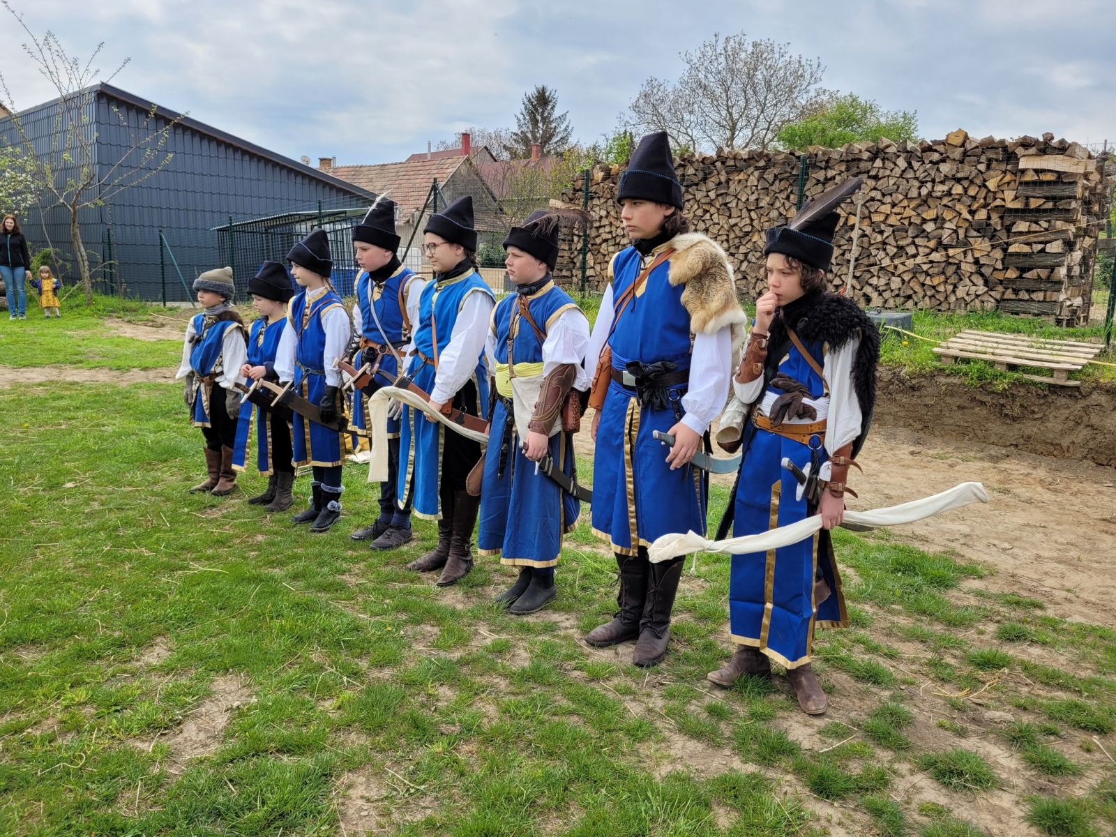A verseny után, idén négy növendékünket avattuk apróddá, Szent György napja alkalmából. Ezek az új vitézeink teljesítették az elmúlt hadiév során a szükséges 30 részvételt az egyesület rendezvényein, edzésein. Ezután elfogyott egy teli üst gulyás, és vidám majálissal fejeztük be a napot, amit végig, a délután folyamán, az apródok fából készült szablyáinak csattogása kísért.