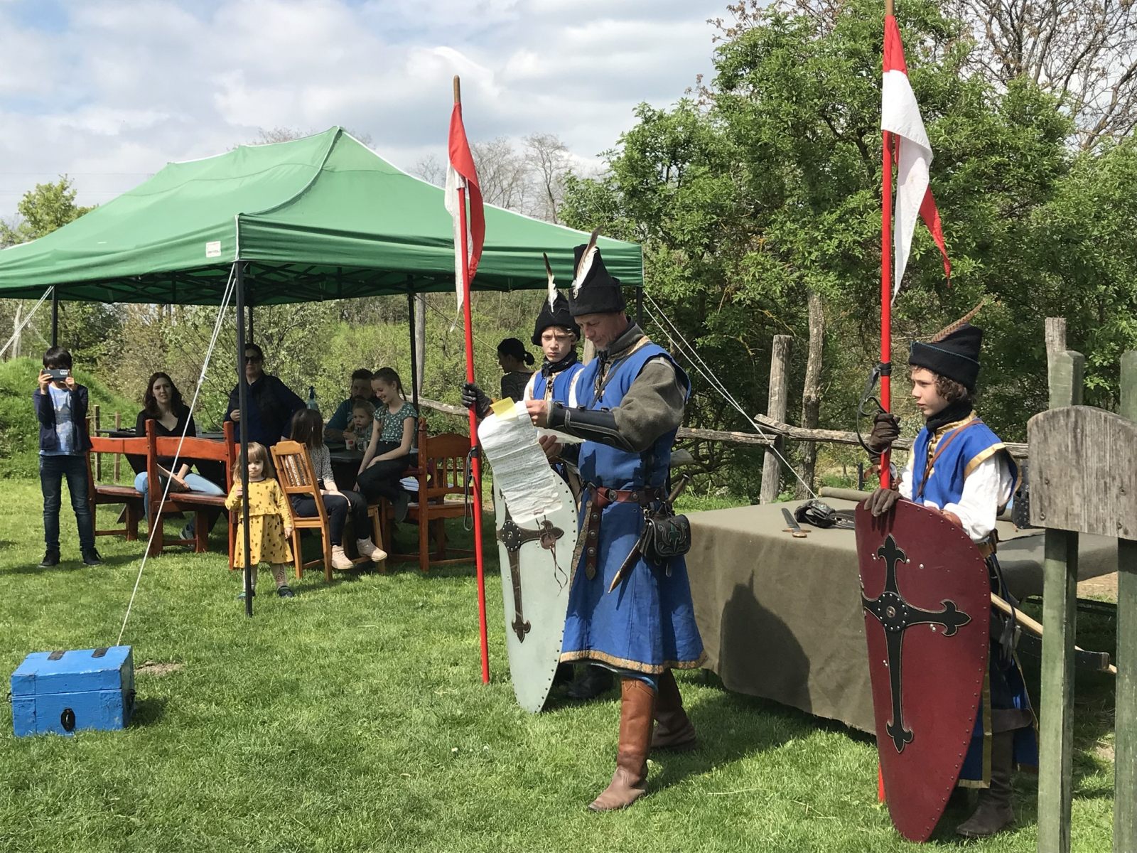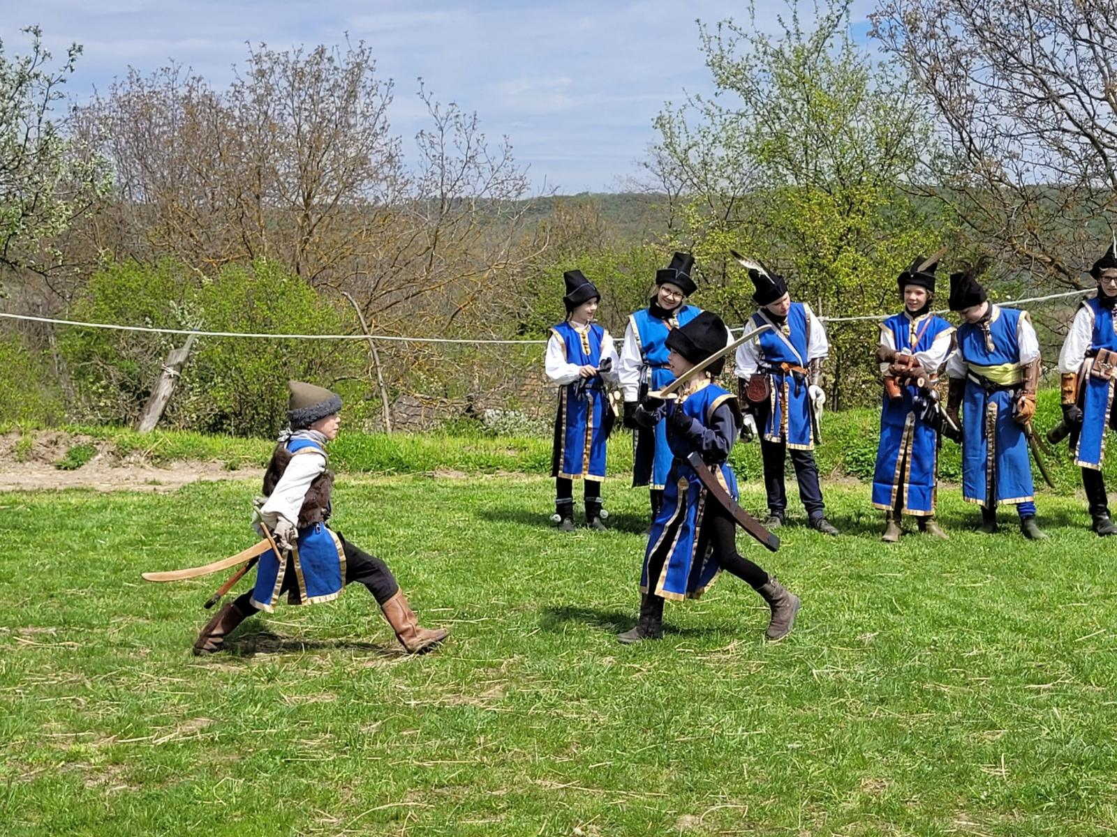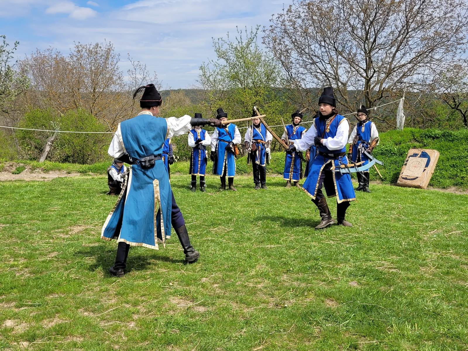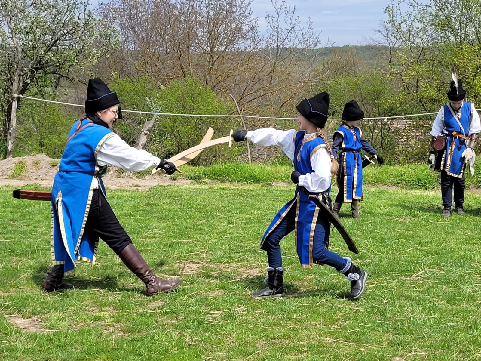 A verseny után, idén négy növendékünket avattuk apróddá, Szent György napja alkalmából. Ezek az új vitézeink teljesítették az elmúlt hadiév során a szükséges 30 részvételt az egyesület rendezvényein, edzésein. Ezután elfogyott egy teli üst gulyás, és vidám majálissal fejeztük be a napot, amit végig, a délután folyamán, az apródok fából készült szablyáinak csattogása kísért.