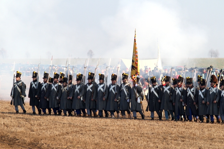 December 5-én, szombaton, először a Pratzen (Prace)–hegyre mentünk, ahol a Béke emlékműve található, mely több nemzet hősi halottainak állít emléket. A csatatér központi részén elhelyezkedő magaslat a francia és orosz gárda összecsapásának helyszíne volt, mely a franciák győzelmével végződött. A monumentális emlékmű alatt több ezer orosz és francia katona van eltemetve. A magaslaton múzeum is található, mely digitális eszközökkel igyekszik bemutatni a csata eseményeit. Ezután Tvarozna faluba érkeztünk, ahol már gyülekeztek a hagyományőrző csapatok, Európa több országából. A falu központjában eligazítás zajlott és korabeli sátrak lepték el a parkokat. Az orosz hagyományőrzők között baskírok is voltak, akikkel közös fotót készítettek székely és bihari huszárok. A falu mellett található Santon-magaslat alatti mezőn, melyen szintén véres összecsapás zajlott a csata idején, került sor a hadijátékra (reenactment), melyet Jiri Kovarik cseh történész moderált. A hagyományőrző csapatok korhű egyenruhákban és felszereléssel érkeztek a csatamezőre, a hivatalos források szerint, közel 2000-en. A székelyeket 50 budapesti hagyományőrző képviselte. Az osztrák-orosz és francia csapatok soraiban: franciák, oroszok (kozákok), csehek, szlovákok, magyarok, osztrákok, lengyelek és németek voltak. Nagyszámú cseh hagyományőrző korabeli osztrák vagy francia egyenruhát viselt.