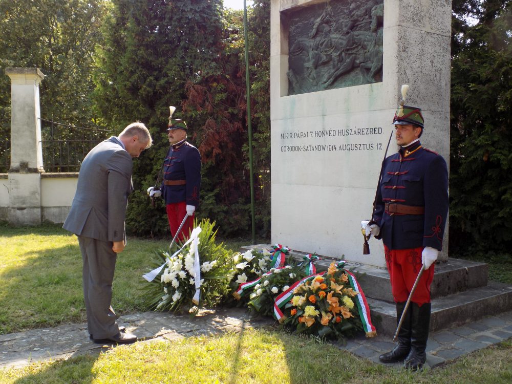 A Pápai Történelmi Játékok részeként minden esztendőben megemlékeznek a hősökről is. Lubienski János huszár altábornagy Korvin utcai emléktáblájánál koszorúztak először, majd a lovas huszárok menete átvonult az Esterházy úti világháborús emlékművekhez. Pusztai Boglárka versmondását követően Bolla Kálmán hagyományőrző huszár őrnagy, a Pápai Huszár Egyesület elnöke mondott beszédet. - A hősöket rettenthetetlen, bátor férfiaknak képzeljük. Vajon nem féltek ezek a hőseink? De igen! Ám tették azt, amire esküdtek: védték a hazájukat becsülettel, önfeláldozással - mondta Bolla Kálmán, majd hozzátette, hogy az első világháború óta 100, a második világháború óta 70 esztendő telt el. Mindkét világégés nagy próbatétel volt a dédapák, nagyapák és apák számára. - Mi, ma élő utódok is próbatétel alatt vagyunk, hogy képesek vagyunk-e méltóképp emlékezni azokra, akik előttünk jártak. Legyünk méltó utódok, mondjuk el gyermekeinknek, unokáinknak, hogy mi történt az elmúlt őrült évszázadban, és ne felejtsük a hősök emlékét! - hangsúlyozta a hagyományőrző huszár őrnagy. Az emlékezést koszorúzás zárta.