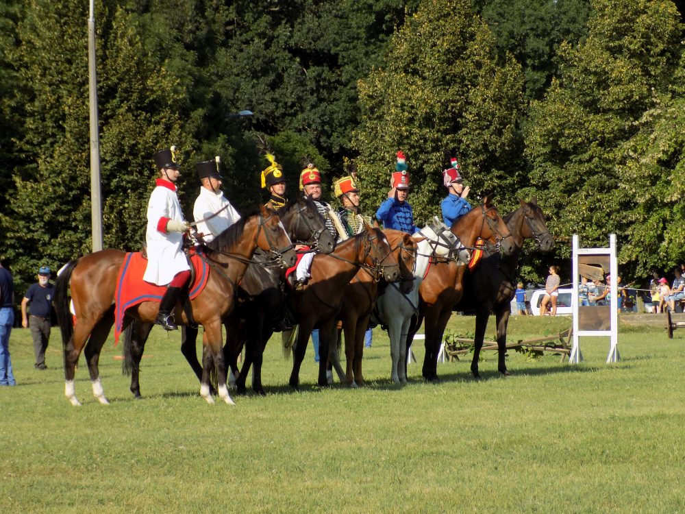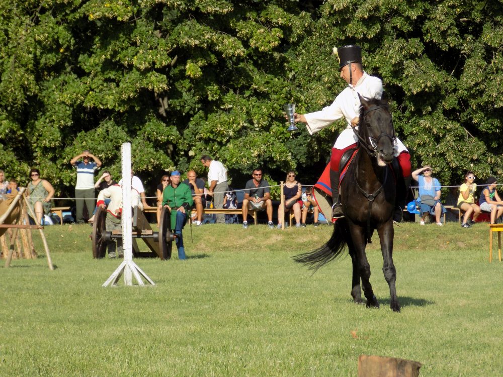 A bemutató ügyességi lovasversennyel kezdődött. A huszár legfontosabb fegyvere és egyben társa a lova volt. Huszárlónak a gyors, erős és bátor ló volt alkalmas, de emellett rengeteg gyakorlás és alapos kiképzés kellett ahhoz, hogy ló és lovasa nehéz terepen, a harci tűzben is végre tudja hajtani feladatait. A bemutatóban nyolc lovas vett részt és olyan feladatokat kellett végrehajtaniuk, melyekkel akár a harctéren is találkozhattak eleink, volt például kopja- és kardhasználat, de ugratás is. Ezt követően a győri lovas nemzetőrök karusszelét láthatták. A karusszelt a lovak báljának is nevezik, hisz ló és lovasa a zenére egymás mozdulatsorát követi, szigorúan kötött koreográfia alapján.