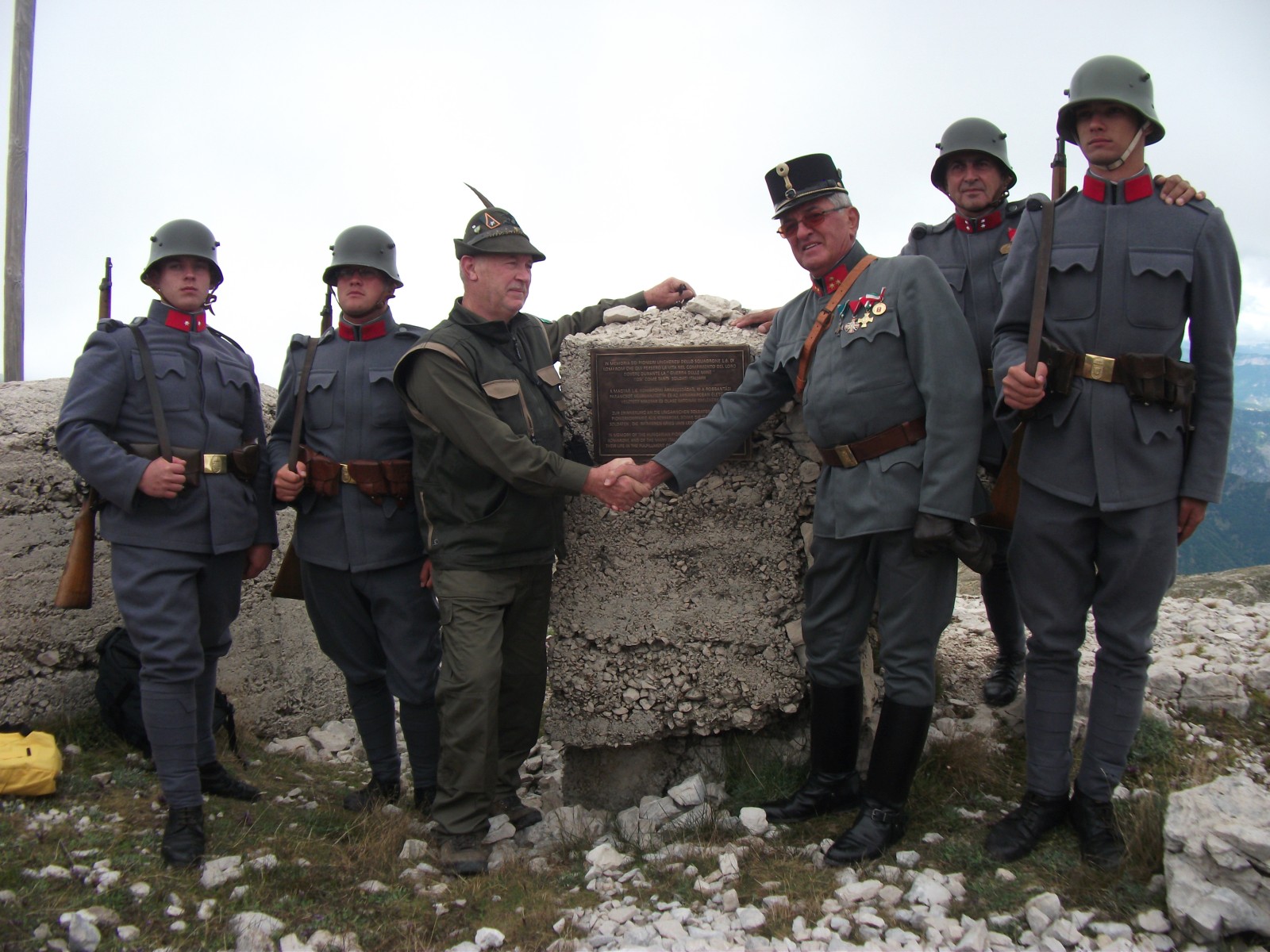 2009-ben dolgozott csapatunk ezen a hegyen a csúcs közelében egy olasz katonatemető rendbetételén. Ekkor jártuk be az egykori csatamezőt és született az ötlet, egy emléktábla állításra. Giacomo Framarin olasz barátunk igen hathatós közreműködésével, 2015. szeptember 5-én az egykori osztrák-magyar állások közepén, négy nyelvű bronz emléktáblát avattunk, a magyar katonáink, a komáromi árkászszázad mérhetetlen szenvedései, hősies helytállásuk és hadi dicsőségük emlékére.