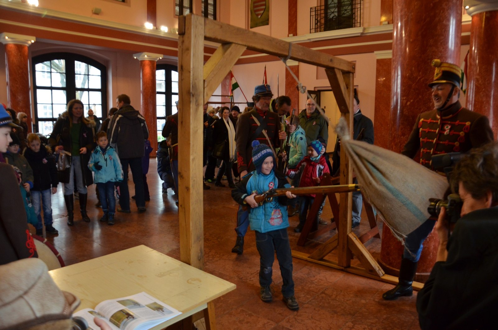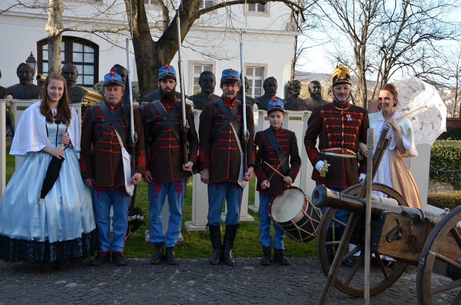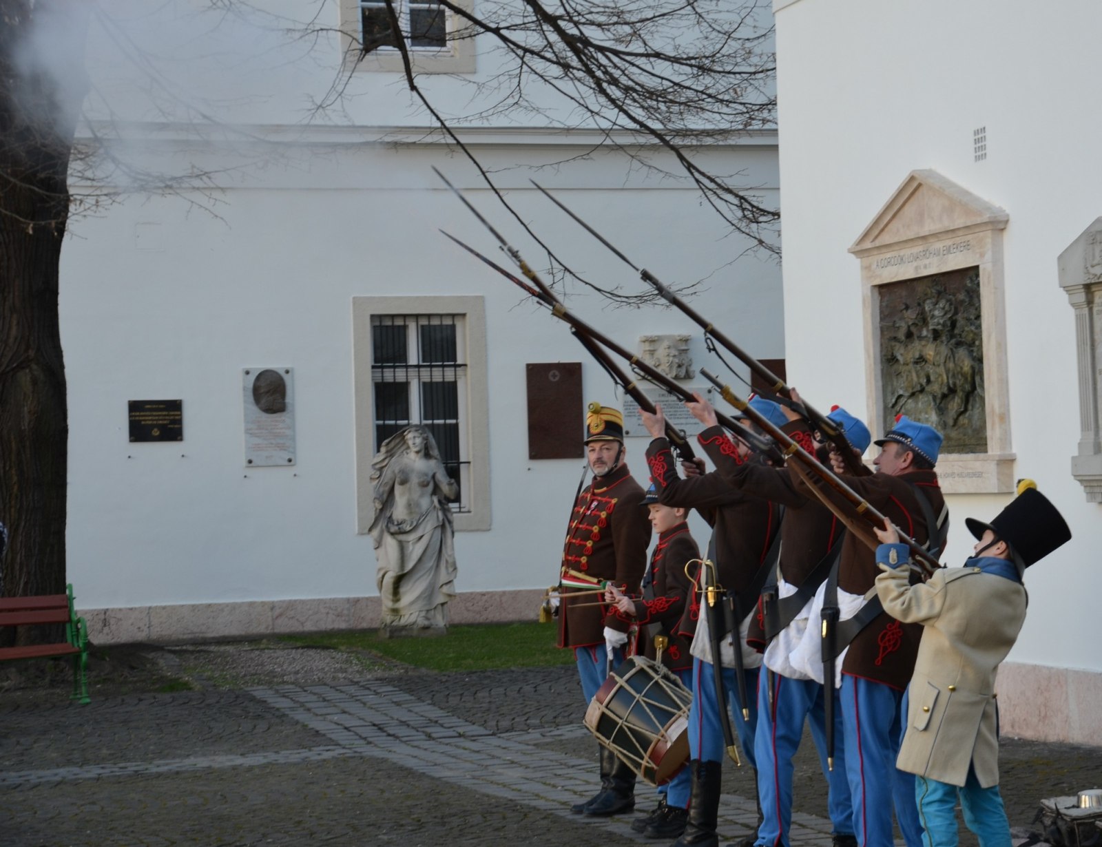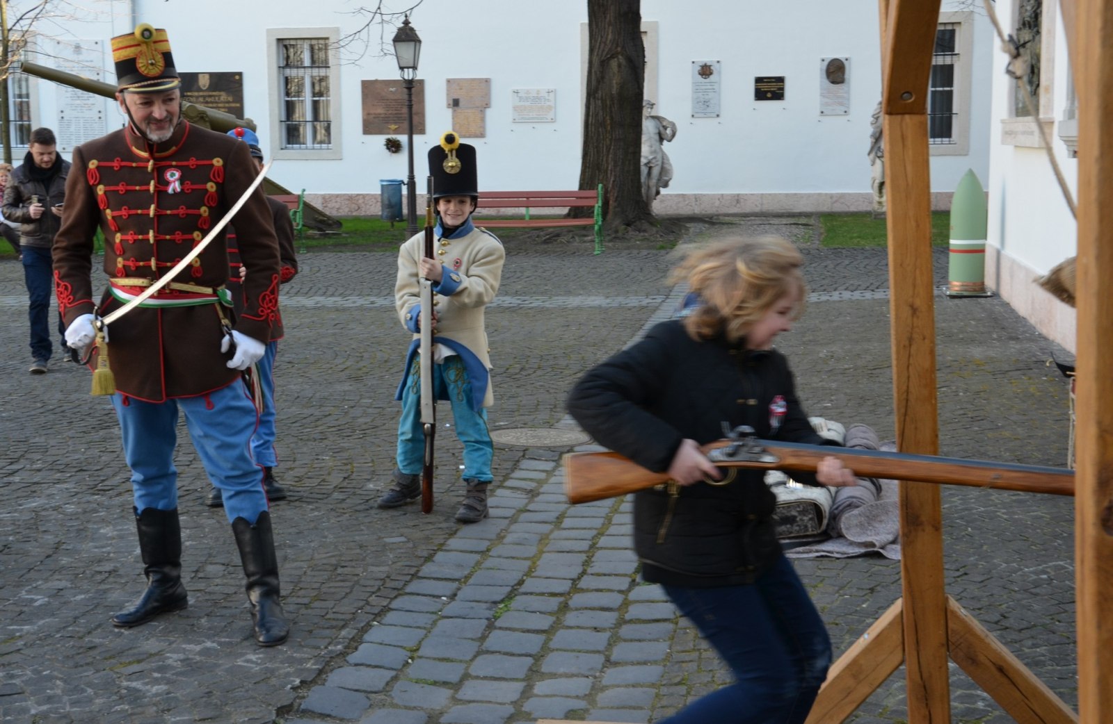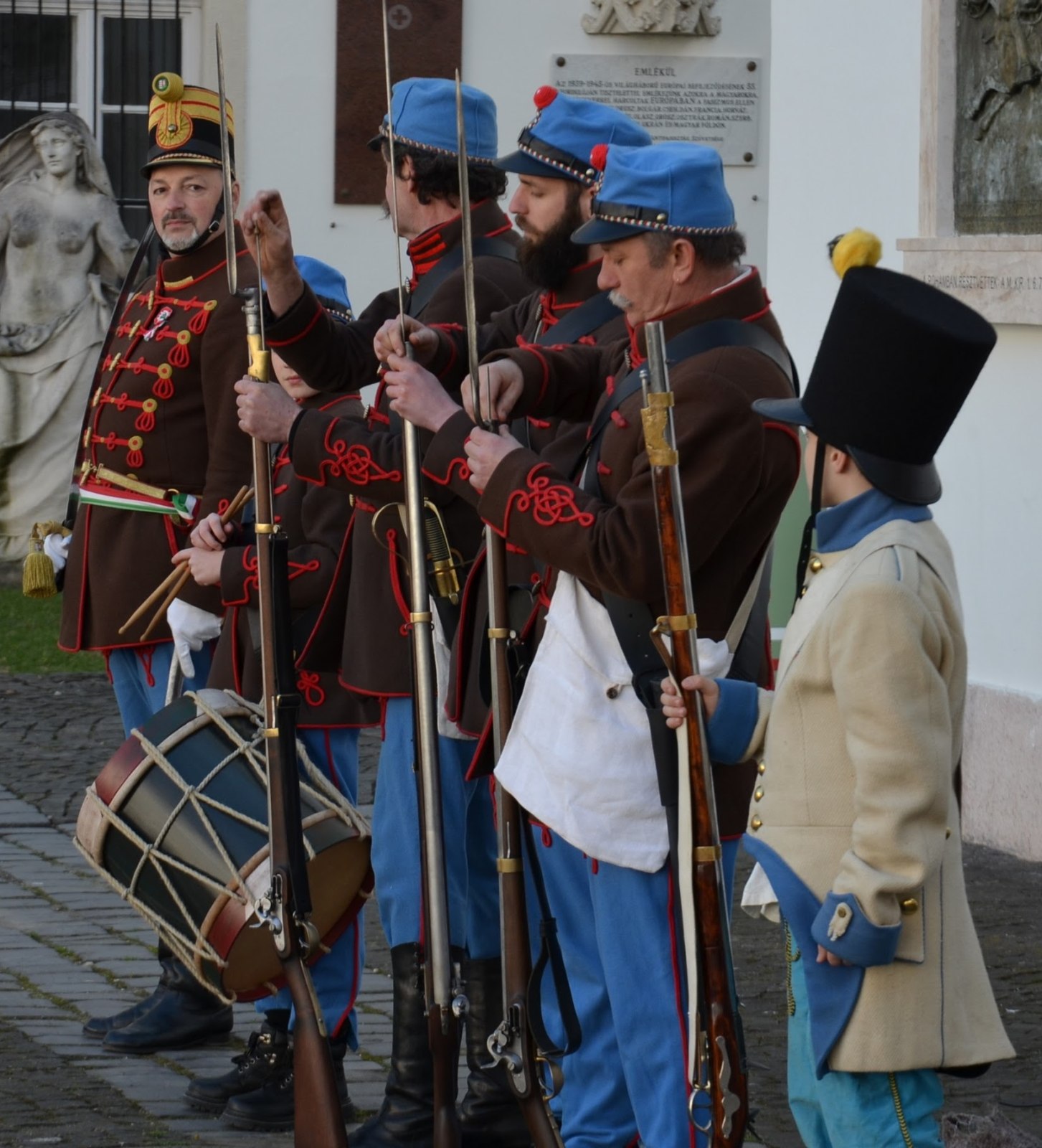 A múzeum főkapujánál a 32. Esterházy Gyalogezred Hagyományőrző Egyesület sorgyalogosi egyenruhájában érkező katonái adták a díszőrséget.