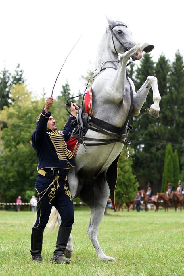 Azonban horvát bajtársaink sem kívántak adósak maradni a látottakért, és ők a nagyobb létszámú, kötelékben végrehajtott mozgásokat mutatták be. A horvát huszárok gyönyörű egységben hajtották végre a kiskört, a fésűt és az átlókat is, hogy aztán a bemutatójuk végén úgy vágtázzanak ki, hogy a föld is beleremegjen.