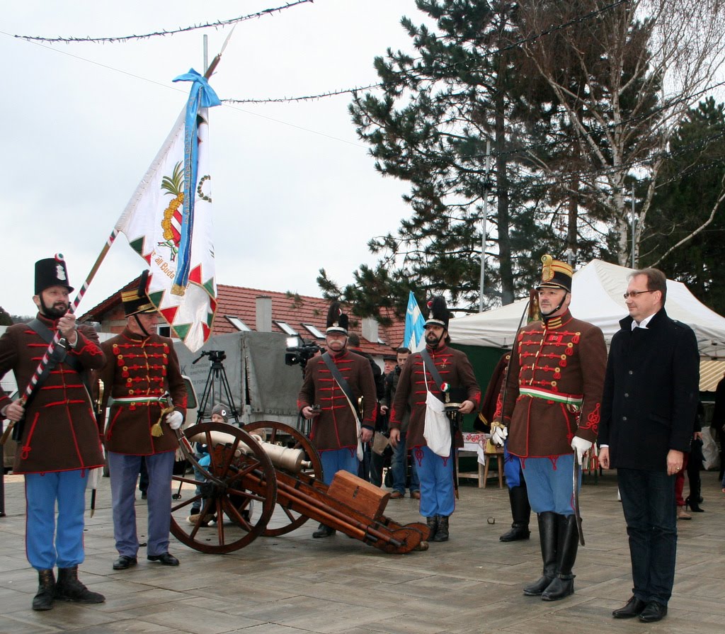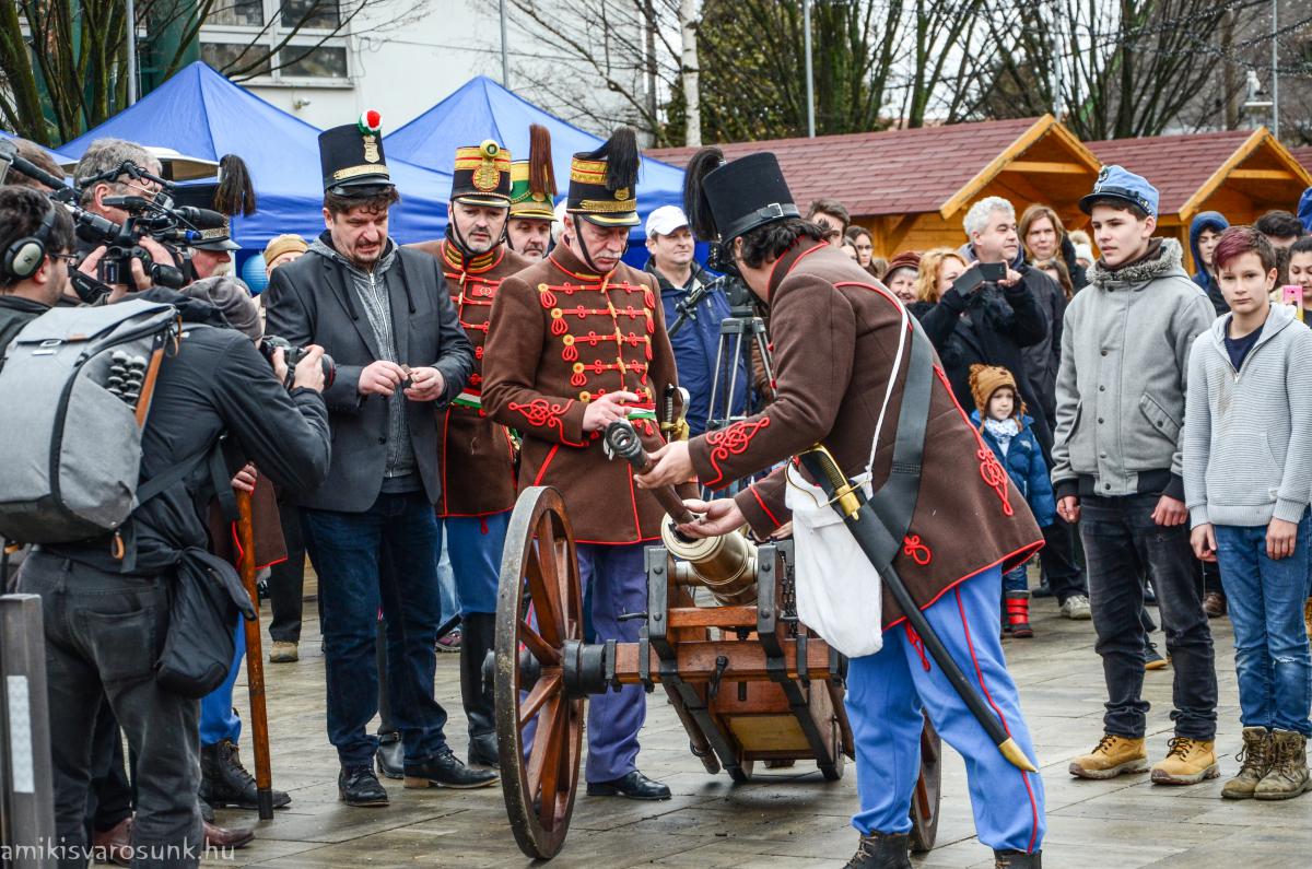 A toborzás rendben zajlott volna, de hirtelen puskalövések dördültek és a honvéd őrszemek szaladtak jelenteni a parancsnoknak, hogy ellenséges járőrcsapat ütött rajtuk. A százados kiadta a parancsot – ágyút előre – az újoncokat pedig mögé rendelte. Egymás után két ágyúlövést adott le tüzérségünk az ellenségre, közben a honvéd zászlóalj is arczvonalba fejlődött és felkészültek a puskasortűzre. A császáriak megindultak vonalban, egy-egy sortűz dörrent, páran kidőltek a sorokból, majd felkerültek a szuronyok és egymásnak rontott a két csapat. Rövid szuronyharc után visszavonultak a csapatok, majd ismét sortüzek és újabb szuronytámadás történt. A honvédeink döntésre vitték a dolgot, a császáriak megadták magukat, zászlót lengetve éljeneztek, hogy a “Téli hadjárat” összecsapását megnyertük. A magyar sorozású császáriak átálltak, így a két csapat egymás mellett felsorakozott és közösen folytatták a megszakított sorozást. Ekkor került sor a hivatalos megnyitó ágyúlövésre, amelyet Novák Péter tüzér hajtott végre, begyújtotta a kanócot és nagy durranással kezdetét vette a rendezvénysorozat.