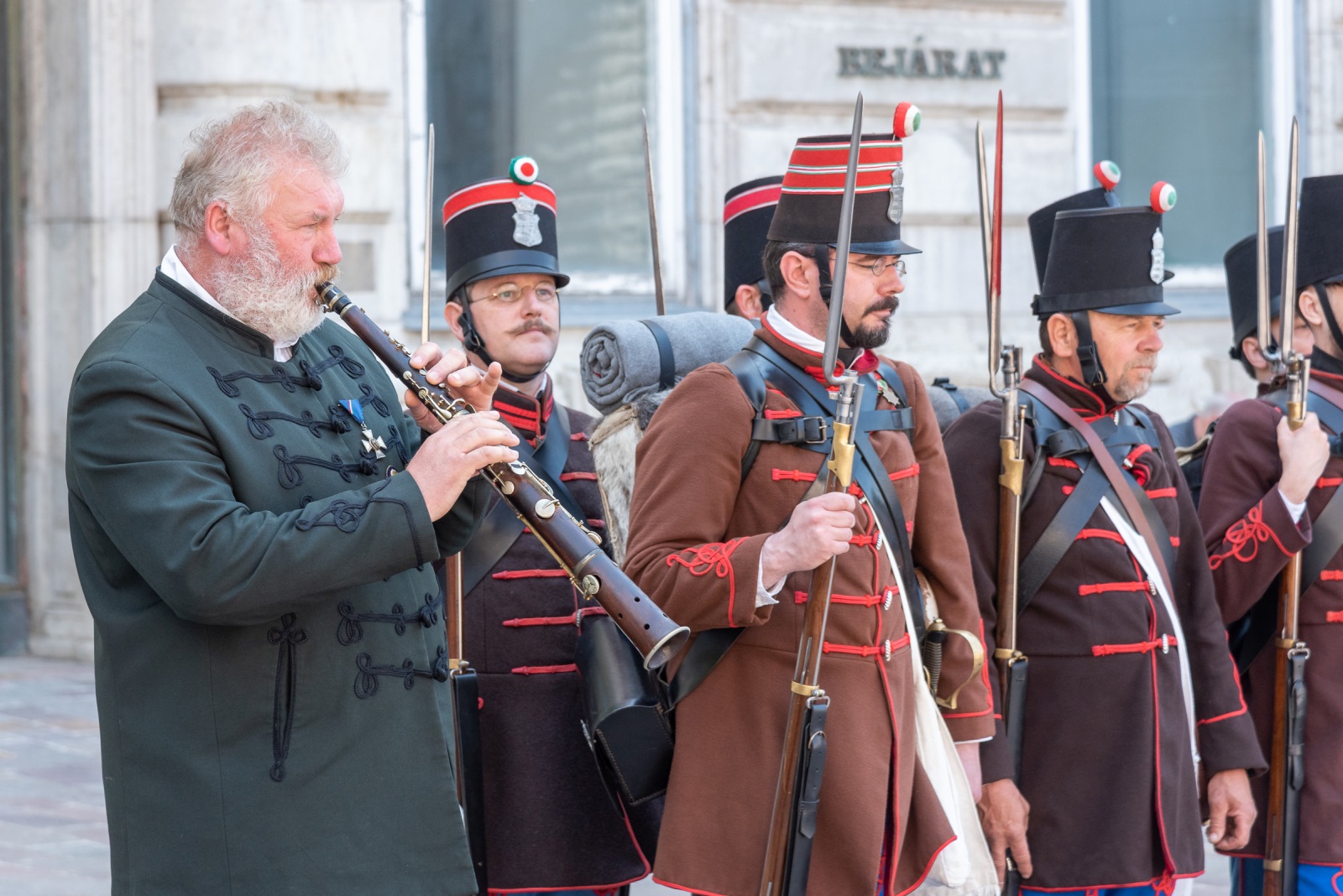 A Budavári Palota Csikós udvarában 10 órától már bemutatókat tartottak a 48-as honvéd gyalogságot megjelenítő hagyományőrzők. Az élő történelemórán a honvéd hagyományőrző egység szemléltette a honvédsereg fegyverzetét, alaki és harcászati mozgásokat mutatott be. A Királyi Lovarda bejáratánál egész nap tüzérségi pont üzemelt, Gábor Áron ágyújának korhű másánál a tüzérek mutatták be a töltés, irányzás és lövés technikáját.