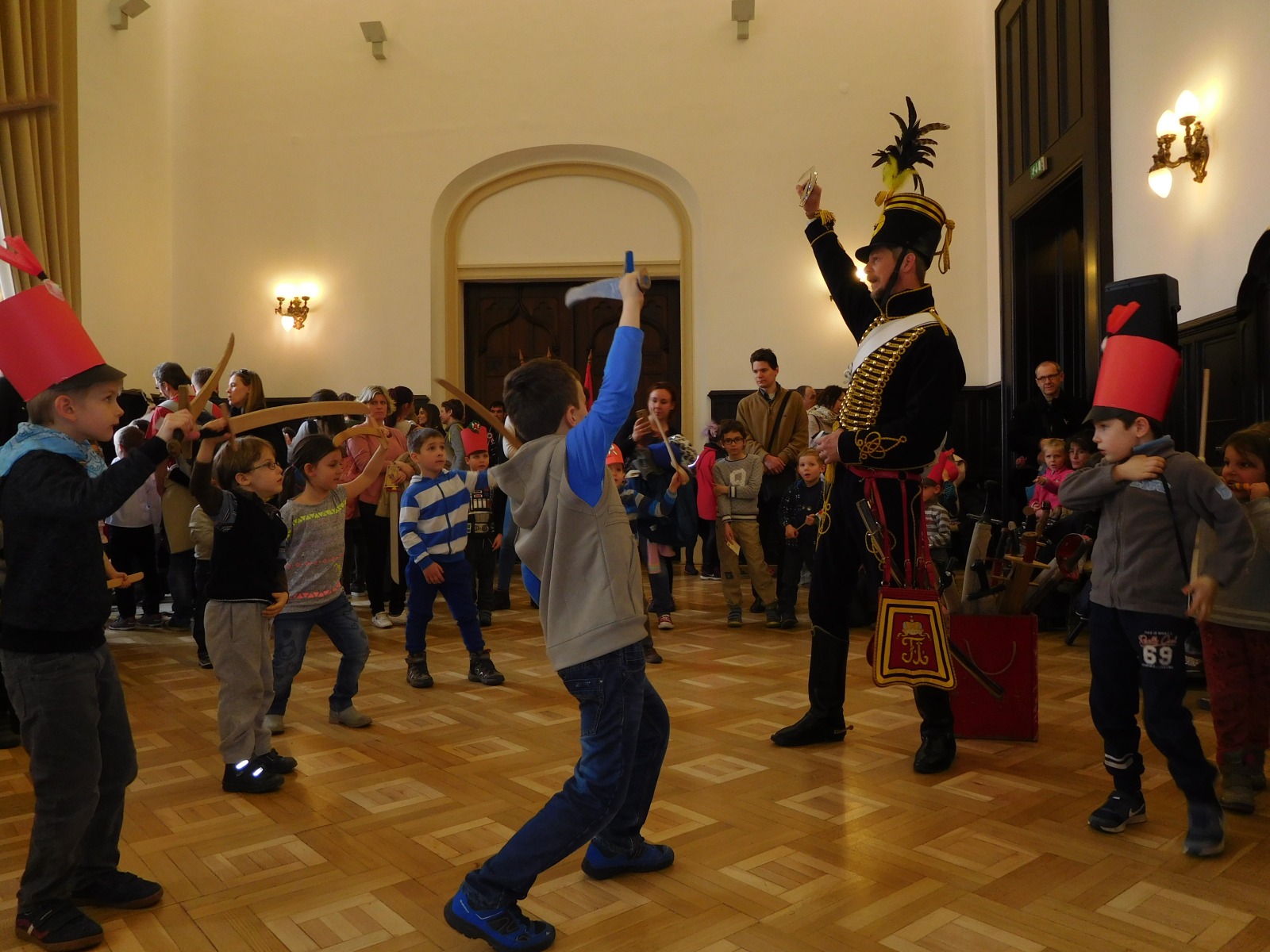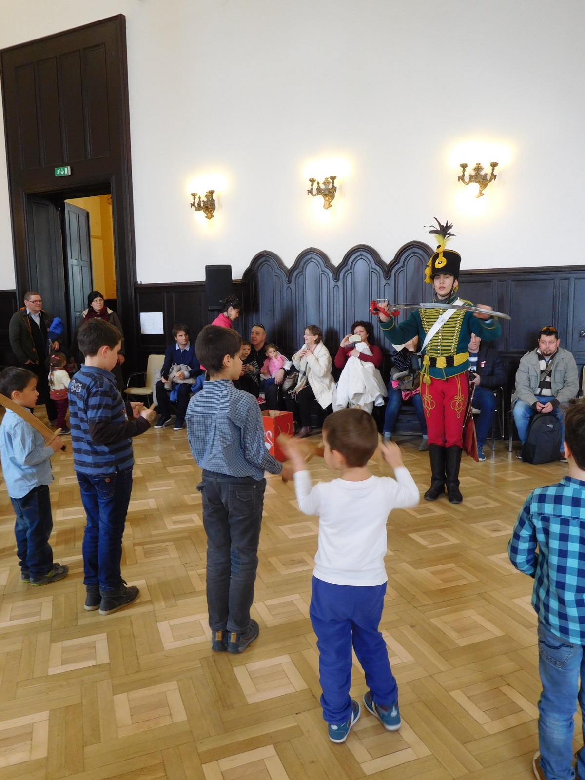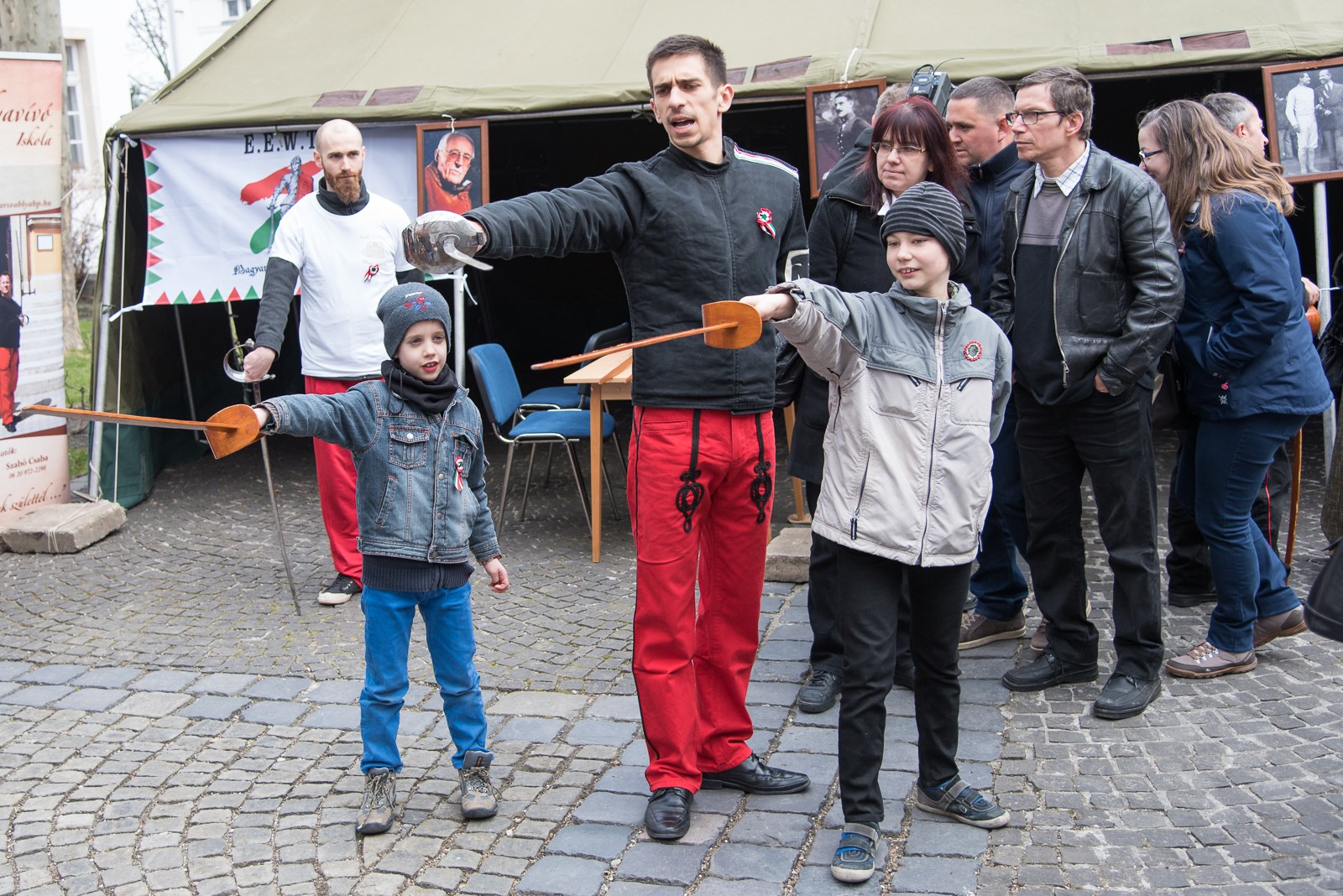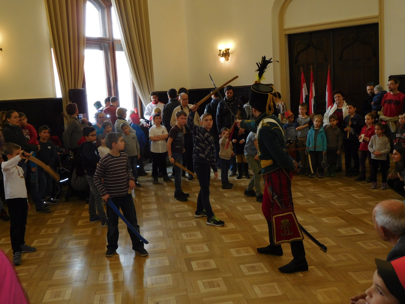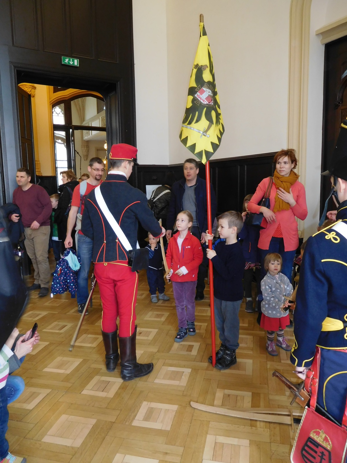 A "VÉRTES" Egyesület a Magyarság Házában töltötte a napot. Kora délelőttől estig tartottak történelmi játszóházat a roppant impozáns épületben, ahol a gyerekek szablyavívással, szuronyos-puskás alaki kiképzéssel, patkófényesítéssel, zászló őrséggel és "lópatkolással" tölthették idejüket, illetve felpróbálhatták a huszárok ruháit és kipróbálhatták fegyvereiket is.