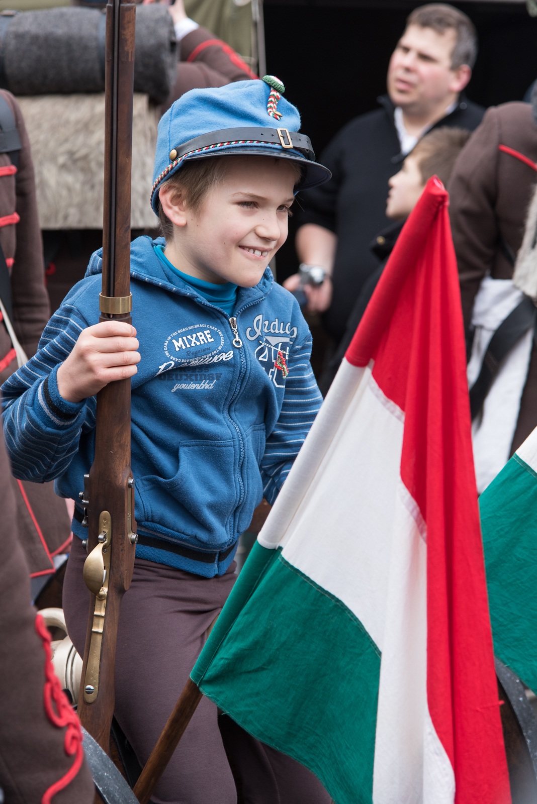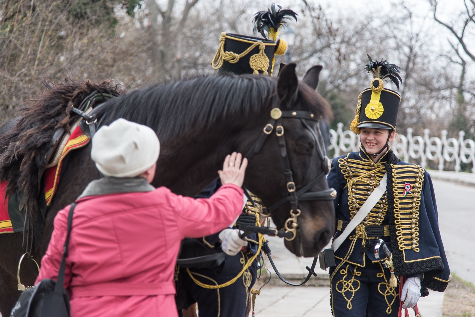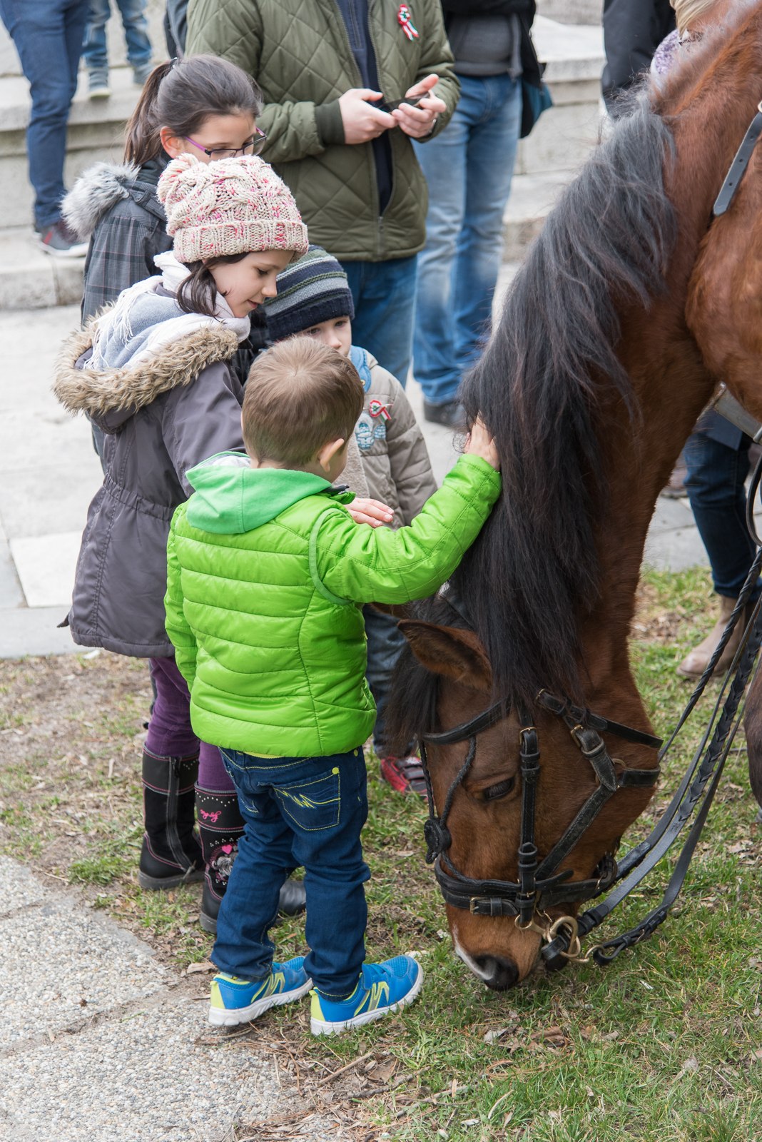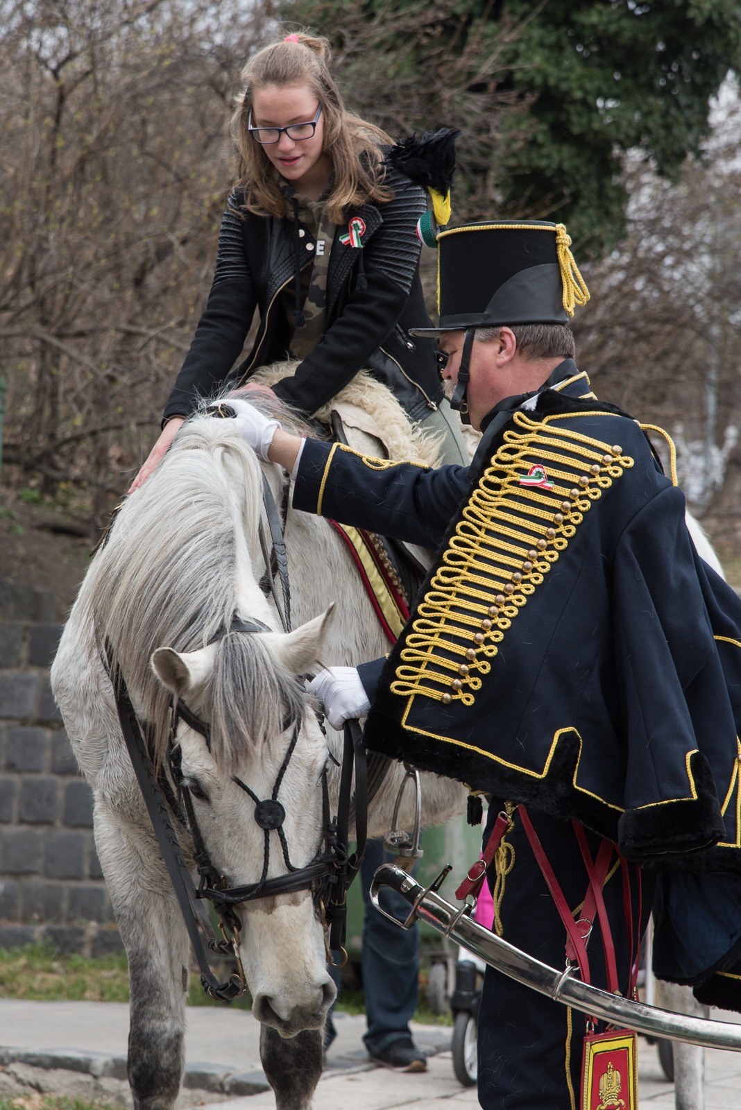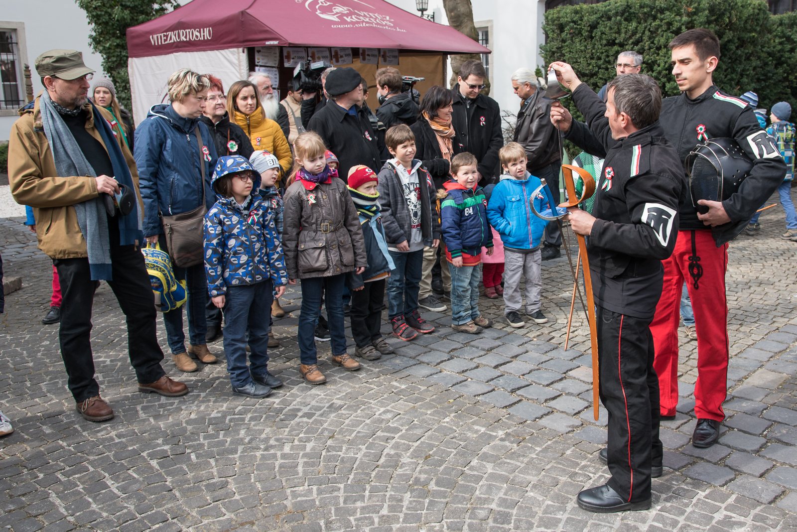 11:30-kor hagyományőrző huszárok menete indult a Nemzeti Múzeumtól a Lánchídon át a Clark Ádám térig. Onnan félórás váltásokban "őrjáratok" indultak a Hunyadi János szoborhoz, ahol gyerekek és felnőttek ismerkedhettek, beszélgethettek a huszárokkal. Ezen az Isaszegi Szent Márton Lovas Hagyományőrző Egyesület, a Mogyoródi Sándor-huszárok és Történelmi Lovas Hagyományőrzők Egyesülete és a Szent László Völgye Lovas Hagyományőrző Egyesület (Martonvásár) huszárjai vettek részt.
