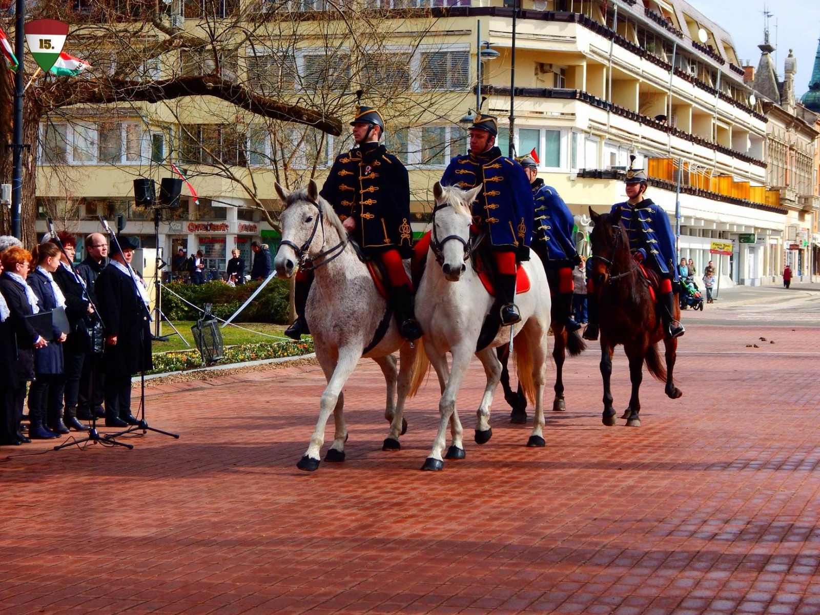 A hódmezővásárhelyi Hagyományőrző 15. Pálffy Huszár Egyesület - mint minden évben - az idén is részt vett a hódmezővásárhelyi városi március 15-i ünnepségen