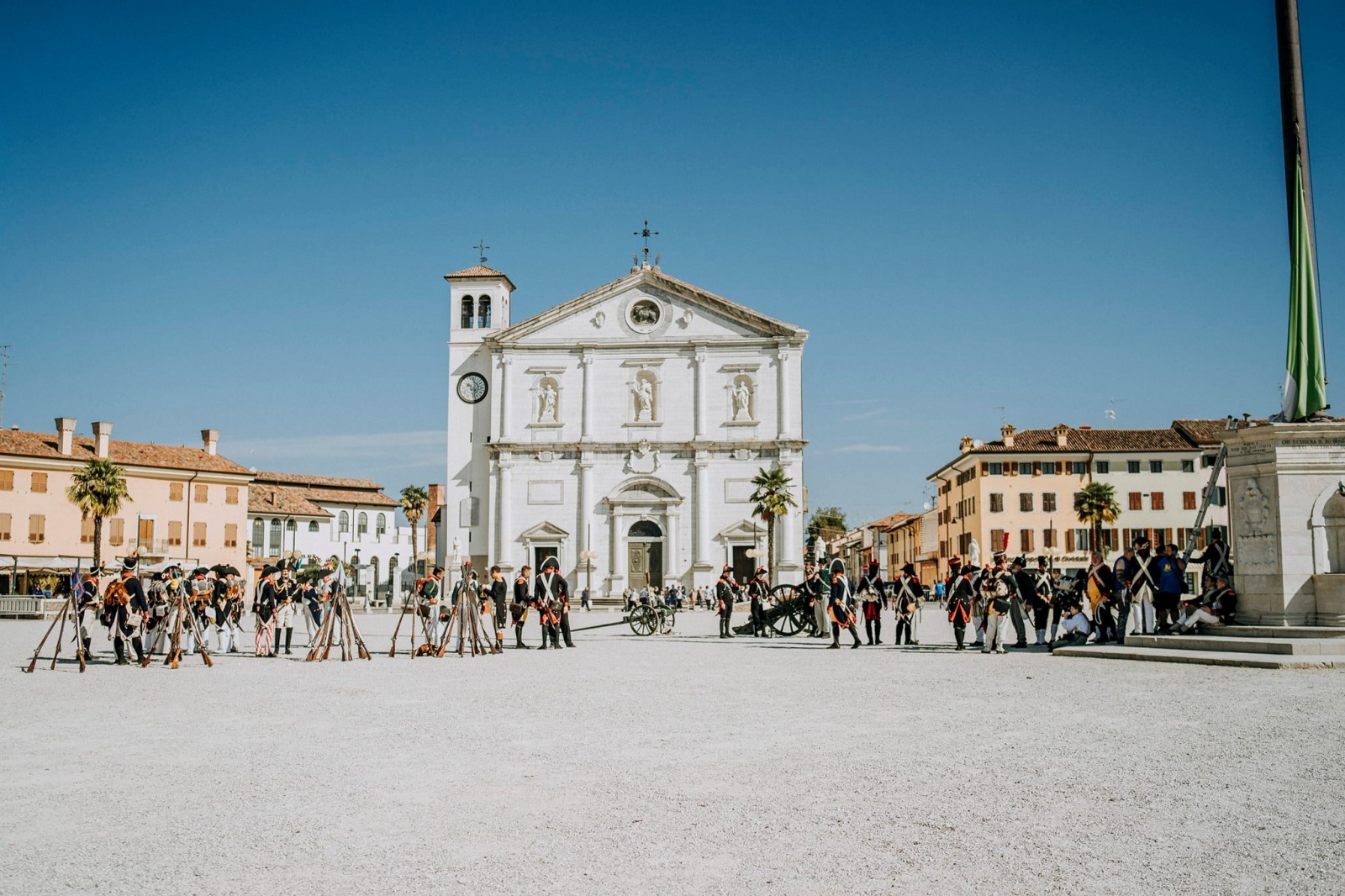 A rendezőPalmanova: Egy külföldi rendezvény tapasztalataik a hagyományőrzők táborát a csillag erőd egyik kiszögelését övező sáncokban helyezték el, alig 500 méterre a város közepén lévő hatalmas főtértől. Kijelölték az osztrák illetve a francia tábor helyét, konfortként csak vízvételi helyet, fekszalmát és tűzifa ellátmányt biztosítottak. Lemálházás után a gépkocsikat a kijelölt parkolóban kellett elhelyezni, ahol a mobil illemhelyeket is felállították.