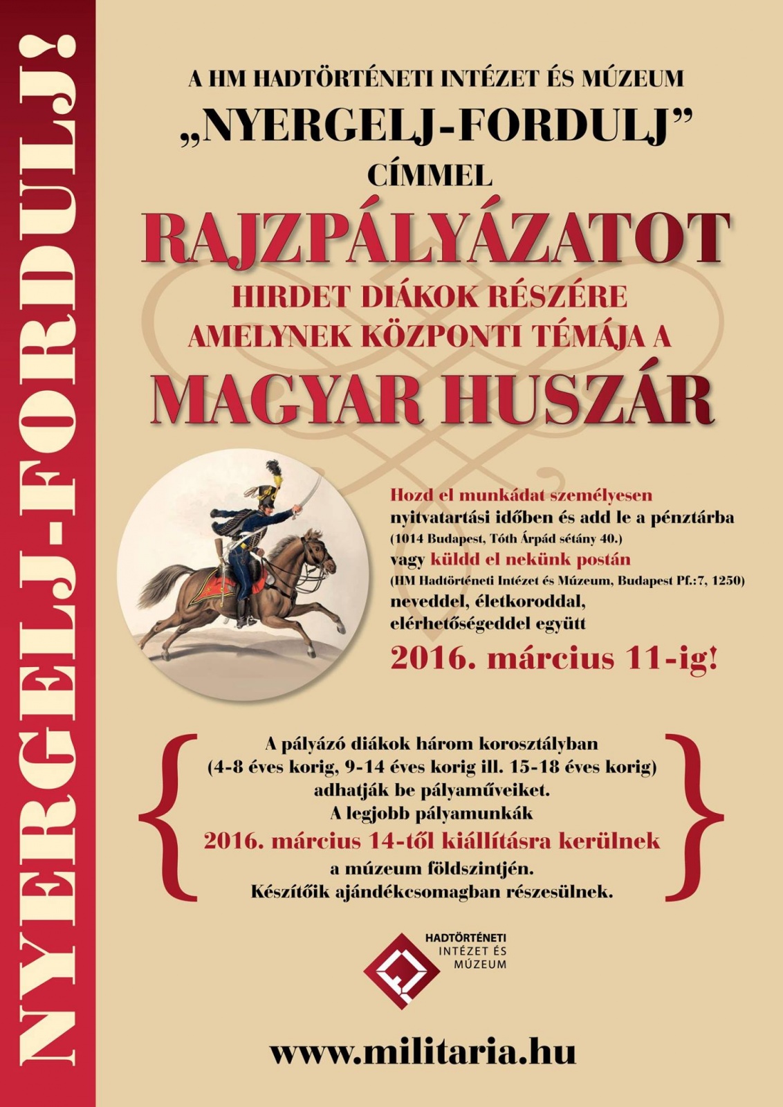 A Hadtörténeti Intézet és Múzeum a 2016. évi Forradalmi Forgatag alkalmával RAJZPÁLYÁZATOT hirdet „Nyergel, fordulj!” jeligével!