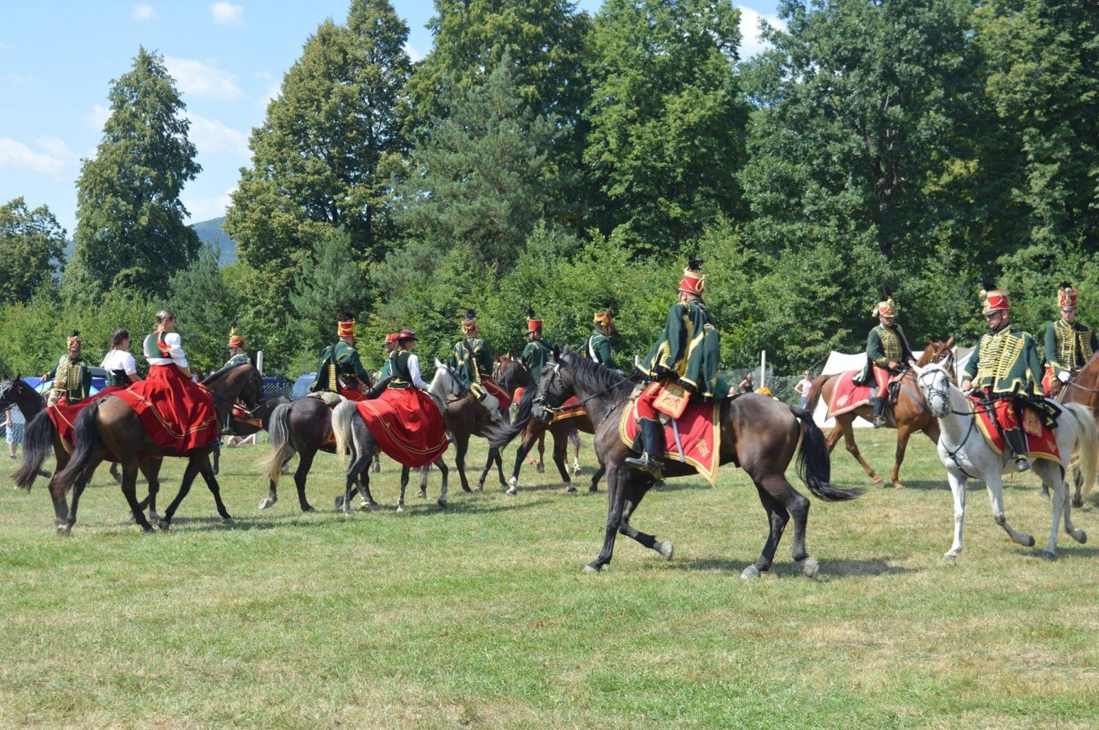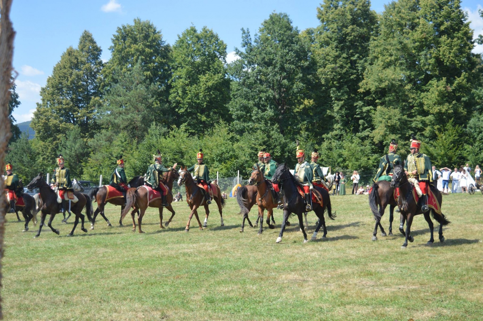 Nem kevesebb sikert aratott a huszárkarusszel 11 egységes Coburg-egyenruhával és 3 dámalovassal szintén az ezred színeiben, illetve a korabeli toborzást előadó néptáncosok verbunkja, valamint a csikósbemutató. Ám mégis őszintén megvallhatjuk, hogy a közönség tetszését leginkább a lótolvajlásért meglakoló betyár felakasztása nyerte el, hiszen még a bitófa is összeszakadt. A hagyományőrzők végül a legkisebbek örömére huszárlovakon lovagoltatták a gyermekeket, arcukon mosollyal, nyomát sem mutatva a tegnapi, az aznapi lovaglás, a korán kelés, a kánikula okozta fáradalmaknak, hiszen mi hagyományőrök tudjuk, a korhű csatákat a közönségnél csak a szereplők élvezik jobban!